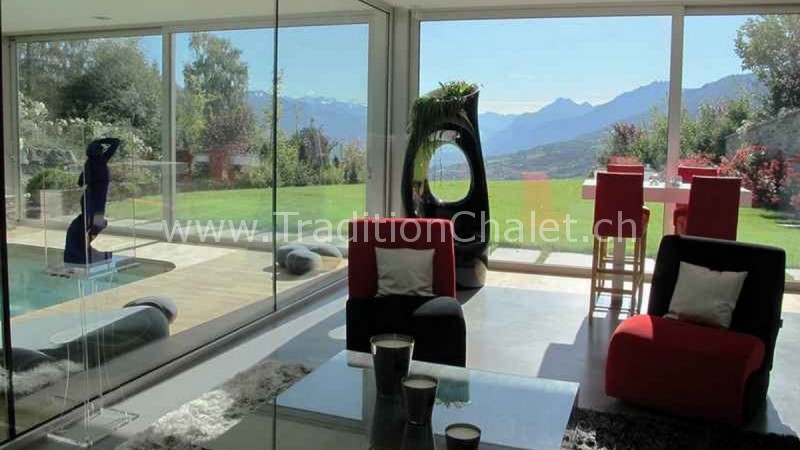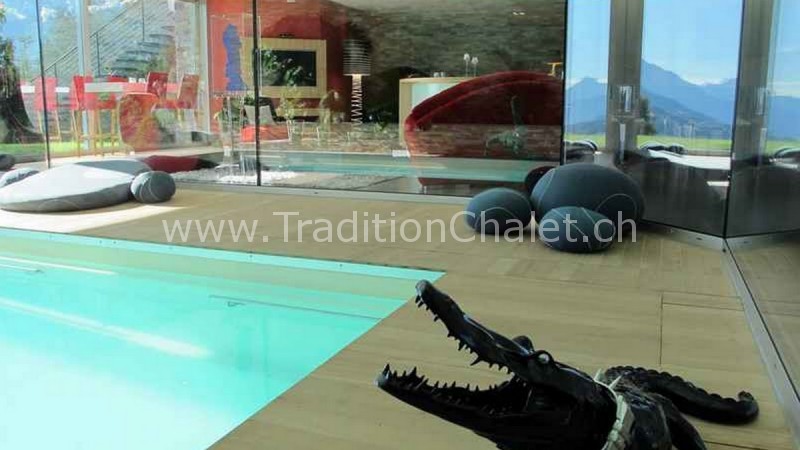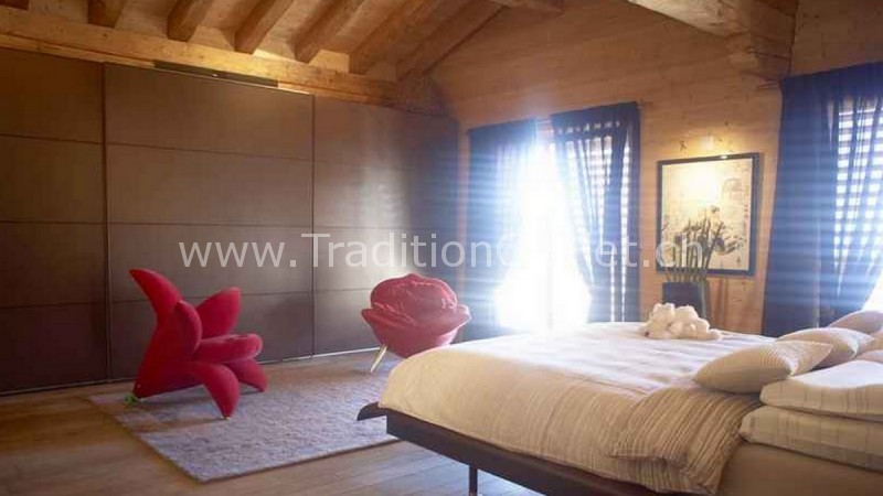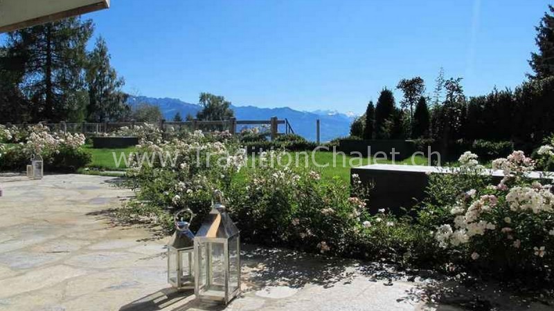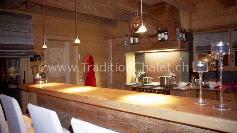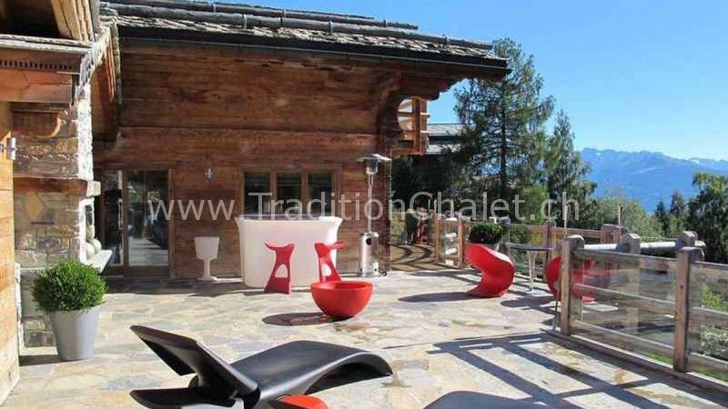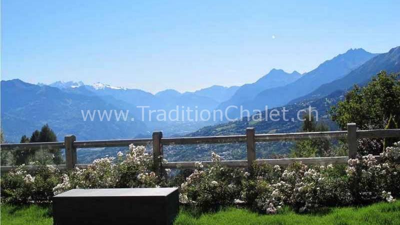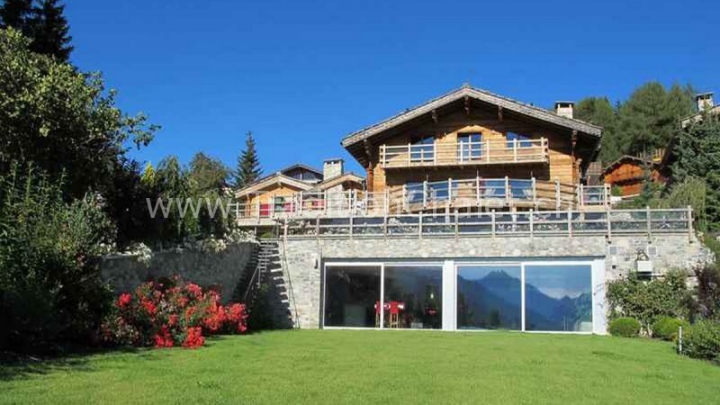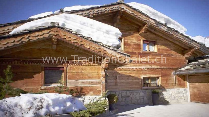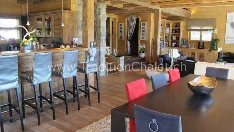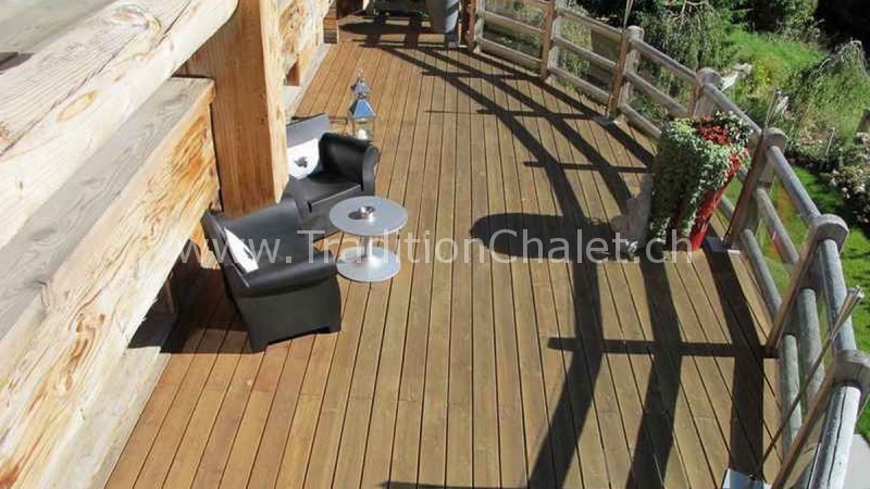Chalet d’environ 850 m2 en vieux bois, sur un terrain de 1600 m² avec une vue sud-ouest sur les montagnes.