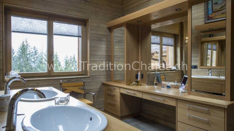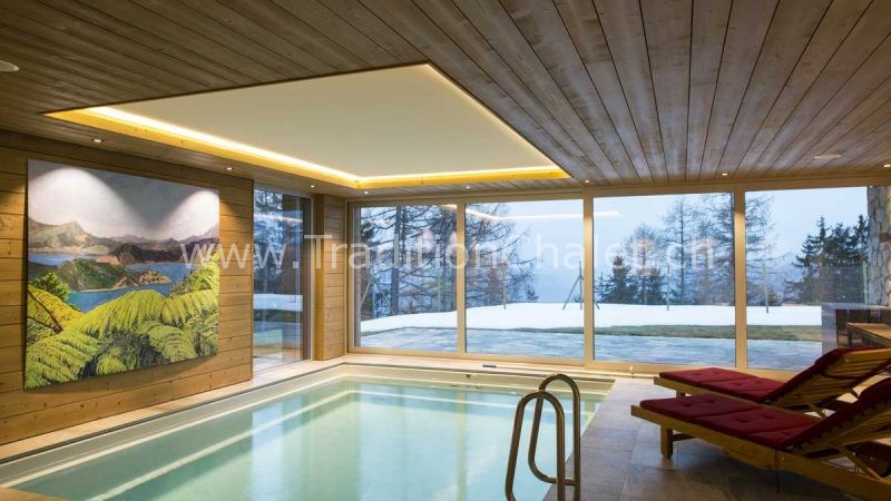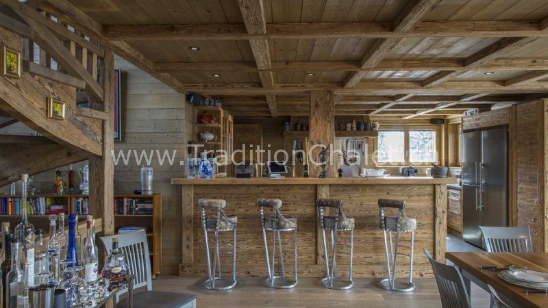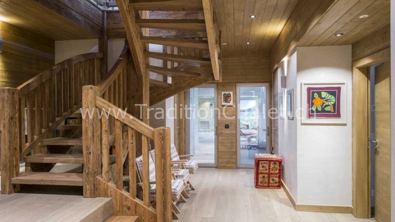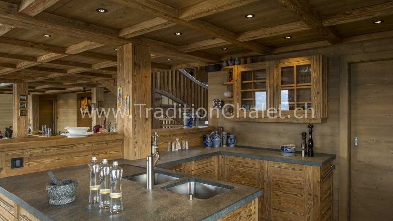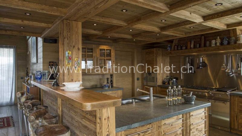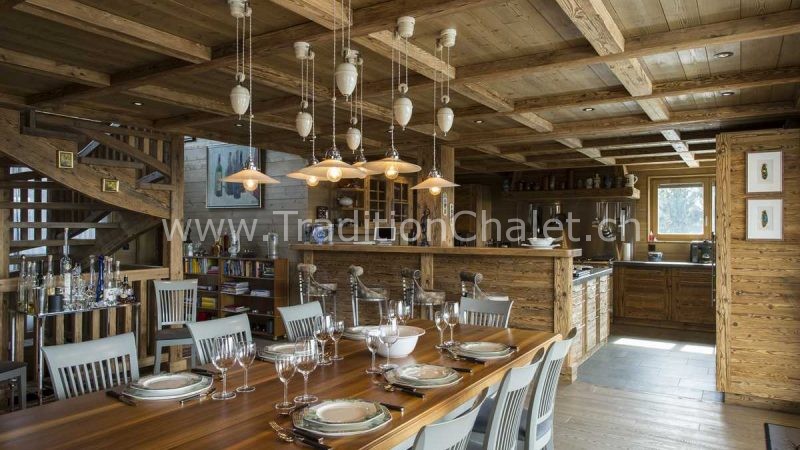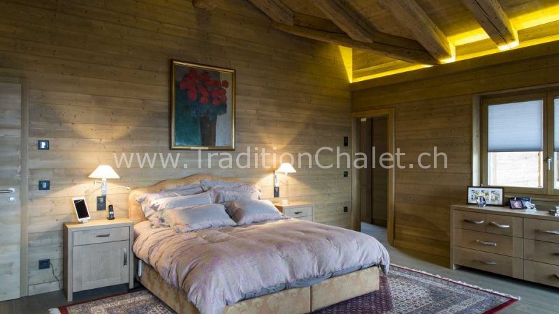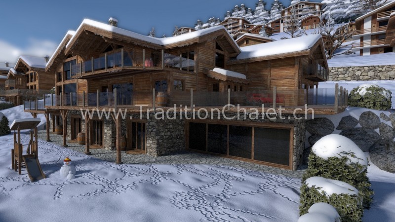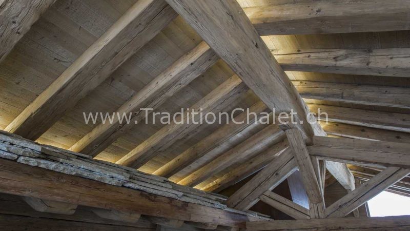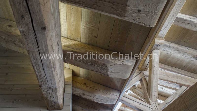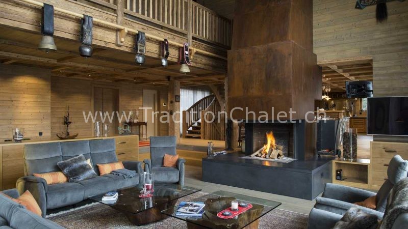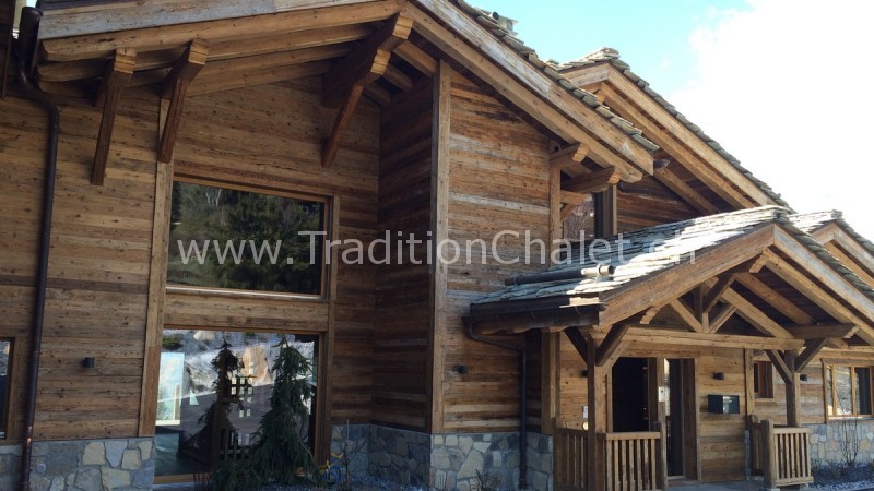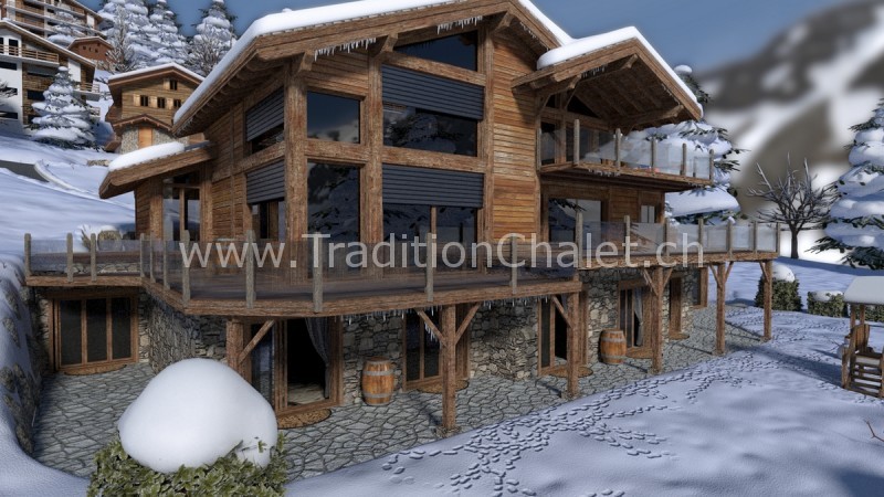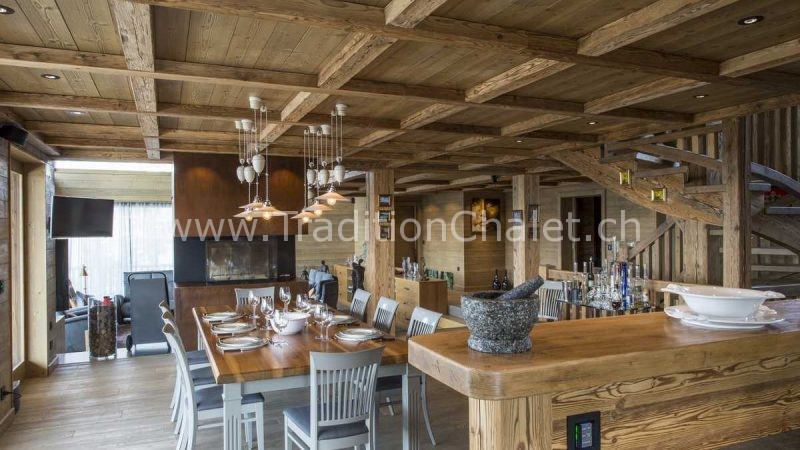 Luxueux chalet en vieux bois avec vue sud-ouest imprenable sur la vallée du Rhône et ses montagnes.